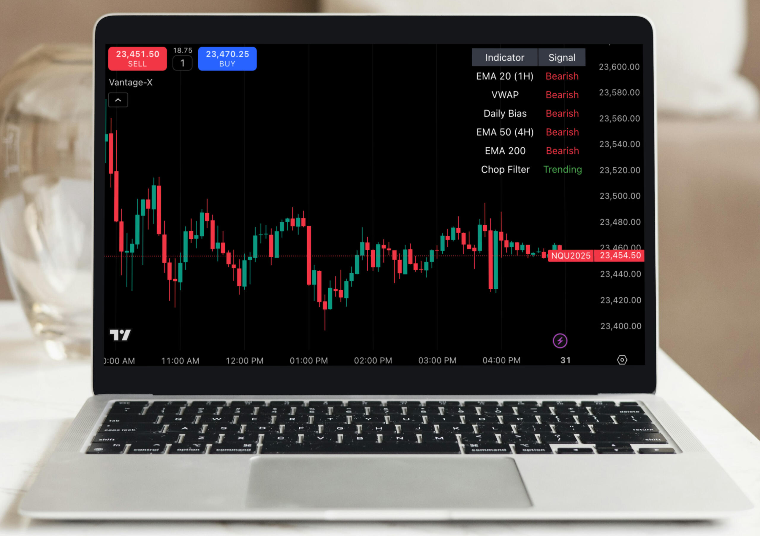 With VANTAGE-X, you don’t need 10 screens or 20 indicators. In one clean dashboard, you see the only signals that matter: trend, bias, and clarity. No clutter. No confusion. Just instant confidence to trade the setup in front of you.